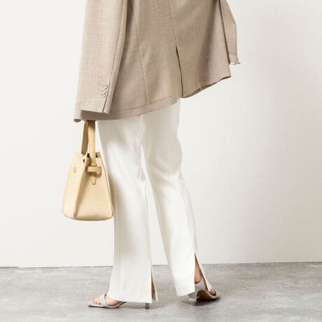 ・好評のカットジョーゼット素材を使用したスリットパンツ