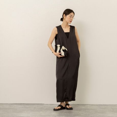 ・上品な光沢感が魅力のサテン素材で、シンプルながら華やかな印象に