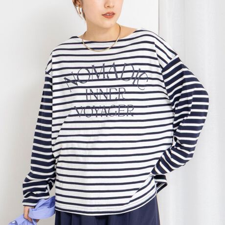 ・定番のボーダーにロゴプリントを重ねた、1枚で映えるデザイン
