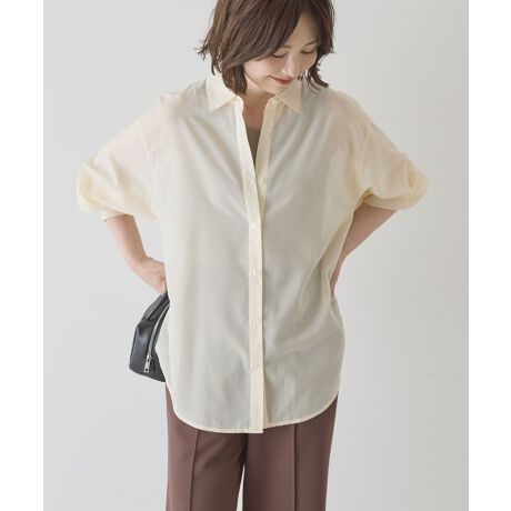 透け感でつくる、大人のやさしい抜け感軽やかなシアー素材が、装いをやさしく彩ってくれる一枚です。程よい透け感が重たく見えがちなコーディネートに抜けをつくり、自然と洗練された印象に導きます。ラウンドシルエットの裾は動くたびに柔らかな表情を生み、体のラインをさりげなくカバーします。レイヤードしやすいデザインなので、タンクトップやカットソーとの組み合わせも楽しめます。カジュアルな日常使いからきれいめなスタイルまで幅広く対応し、着回し力の高さも魅力です。毎日のコーディネートに取り入れやすく、長く愛用できる一枚です。