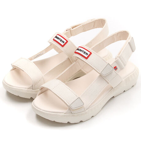 [型番:UFF7136CAA]夏のスタイリングに取り入れたいキャンバスストラップが特徴的なサンダルが登場。サマーシーズンの街履きとしても、海やプールサイドでスイムウェアと合わせるのもおすすめの新作。フロントのHUNTERブランドロゴ以外は極力シンプルに仕上げた、軽快な夏のコーディネートにマッチするデザインです。