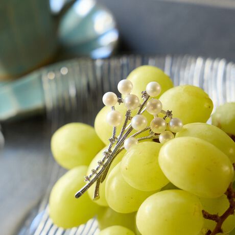 大切な人から花束を贈られた時の高揚感を。大小の淡水パールと模造石によるきらめき感をプラスして花束をイメージしたブーケモチーフに。
