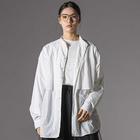 ナイロンタフタ生地を使用したシャツは、軽量でさらりとした質感が特徴。