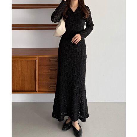 callautia カットレース長袖ポロワンピース(ペチワンピースセット)