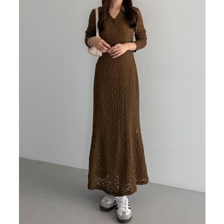 callautia カットレース長袖ポロワンピース(ペチワンピースセット)
