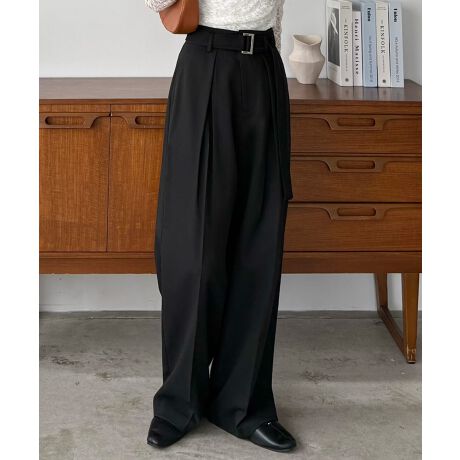 callautia ベルト付きダブルタックワイドパンツ