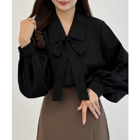 CENEA 【リボン取り外し可能】ボウタイブラウス