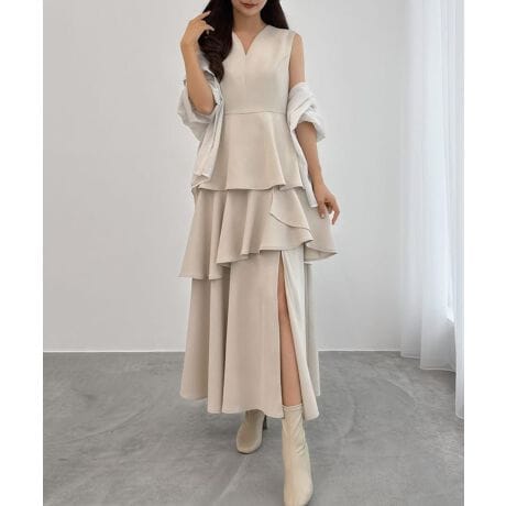 CENEA スリットティアードワンピース