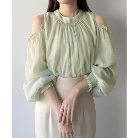 mipiarl オフショルシアーギャザーブラウス