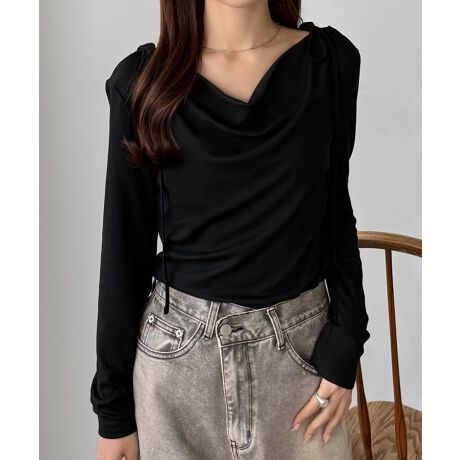 callautia 薄手2way肩リボンドレープトップス