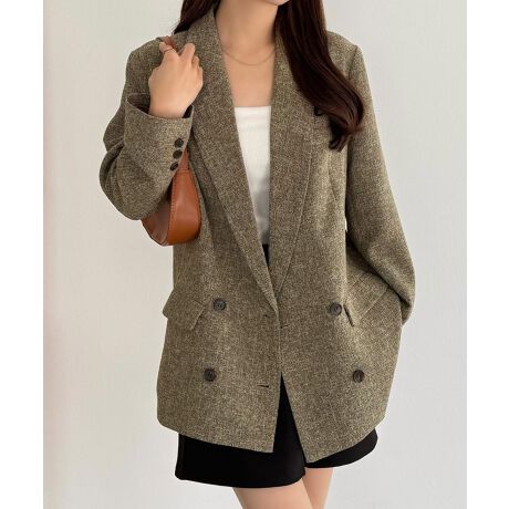 callautia 薄手ツイードテーラードシャツジャケット