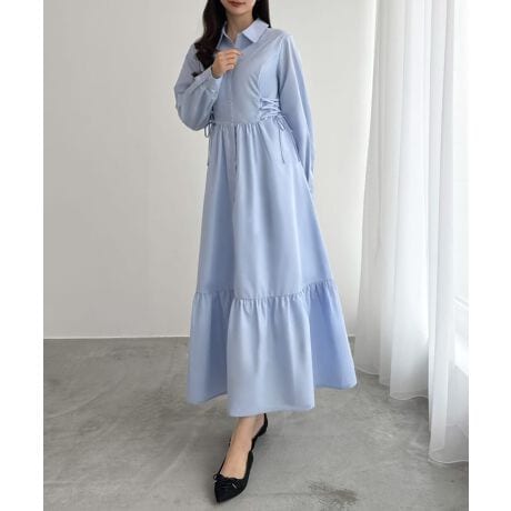 CENEA サイドレースアップヘムフレアシャツワンピース