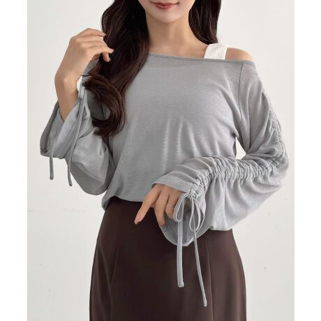 CENEA 【取り外し可能パット付き】袖ドロストカットソー+リブタンクトップSET