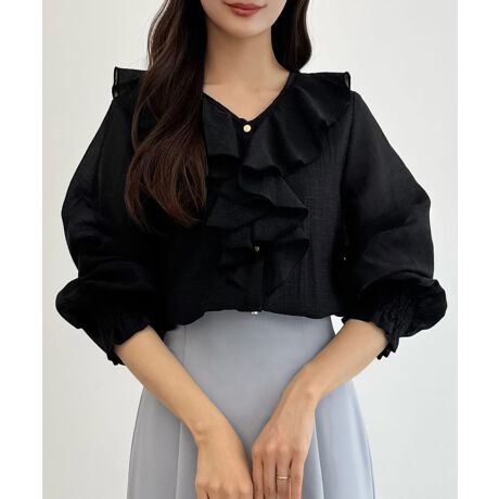 CENEA Vネックフレアラッフルブラウス