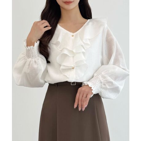 CENEA Vネックフレアラッフルブラウス