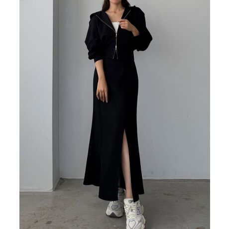 Louere ポンチショートパーカー+スリットマーメイドスカートSET