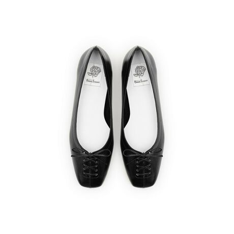 スクエアトゥで甘すぎないデザインフラットシューズ。