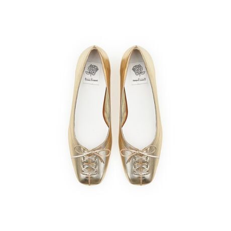 スクエアトゥで甘すぎないデザインフラットシューズ。