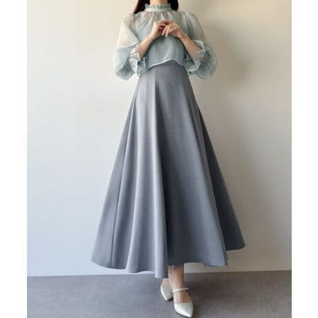 mipiarl フリルカラーシアーブラウス+フレアキャミワンピースSET