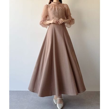 mipiarl フリルカラーシアーブラウス+フレアキャミワンピースSET