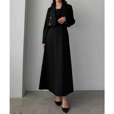 Louere バックスリットショートジャケットsetキャミフレアワンピース