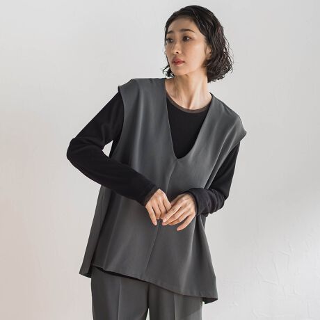 インナーを選ばず重ねやすく、セットアップとしても単品でも活躍。