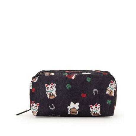 招き猫やクローバー、馬蹄、ハートなど、幸運モチーフを散りばめたラッキープリント。ブラックベースに映える手描き風の招き猫が、遊び心たっぷりに、日常へ“ちいさな幸せ”を運んでくれます。