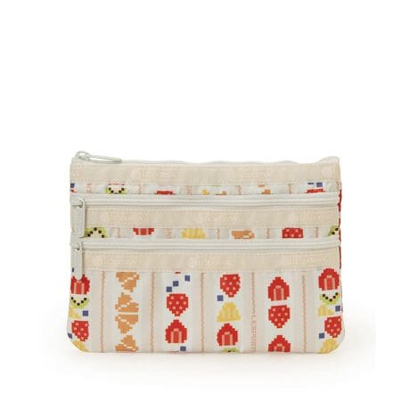 フラットな3段ジップポーチです。深さの違う3つのポケットで細かいものの整理が簡単に。コスメポーチとしてはもちろん、ペンケースやお財布、パスポートケースなど日常使いから旅行まで幅広い用途でお使いいただけます。バッグの隙間にストンと入るスリムさで持ち運びも便利。