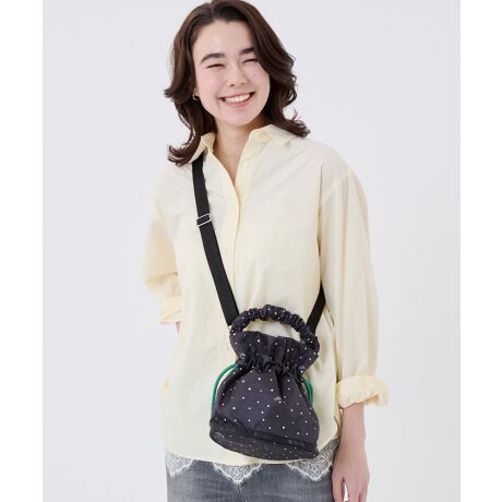 ギャザーハンドルと、コロンとしたフォルムがかわいらしい巾着型ミニショルダーバッグ。スマートフォンやミニ財布などを入れて、ちょっとしたお出かけはもちろん、旅行やランチのサブバッグとしてもおすすめです。取り外し可能なショルダーストラップなので、手持ちや肩掛け、斜めがけとスタイリングに合わせてお使いいただけます。