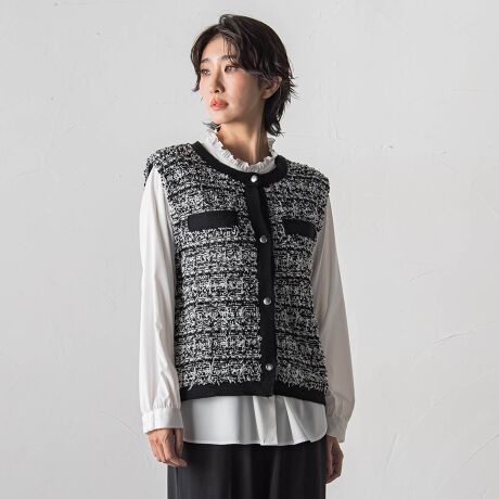 【大きいサイズ】ファンシーツイードニットジレ