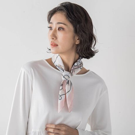 クラシックな柄を、やさしい色合いで仕上げた大判スカーフ。