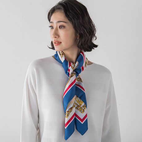 コーディネートのアクセントになる大判サイズで、首元にもバッグにも映える一枚。