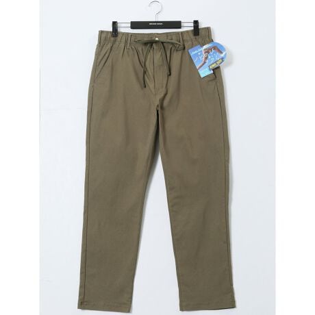 ラクチンな穿き心地が病みつきになるノータックのイージーパンツです。ウエストはシャーリング仕様で着用ストレスを軽減しています。ドローコードは中でも外でも結べる2WAY仕様になっています。裾部分は加工済みです。(股下3L:73-5L:75・ミシンたたき)