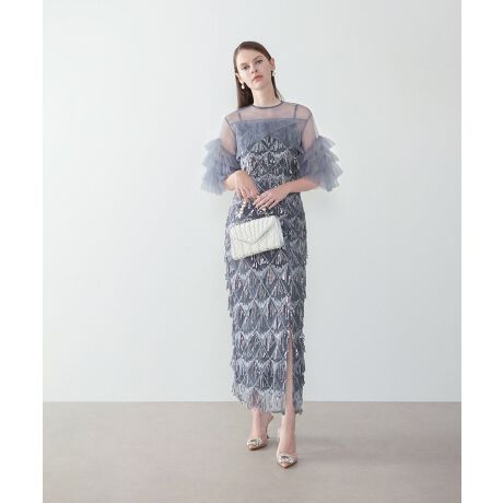 #ロングドレス #パーティードレス #オケージョンドレス #スパンコールドレス #フリンジドレス #チュールスリーブ #Iラインドレス #結婚式ドレス #謝恩会 #二次会ドレス #華やかドレス