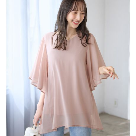 さらりとした落ち感のあるシフォン素材を使用。動くたびにドレープが揺れ、上品な印象。