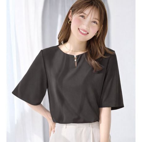 ブラウスのような上品さと、カットソーの着心地を両立した一枚。