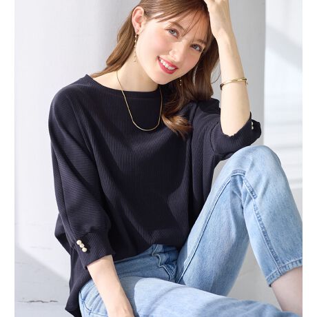 袖口パールゆるドルマンリブトップス