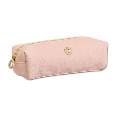 シボ感のある柔らかい合皮を使用したペンケースシリーズ。◆シリーズ共通ポイント・豊富なカラーバリエーション・センターにビジュー入りのデイジー金具・ロゴ入りの引き手◆アイテム紹介(スクエアペンケース)・モノトーンと優しいパステルカラーの展開・大きめサイズでブラシケースにも便利内側:ポケット×2[型番:226-861814]