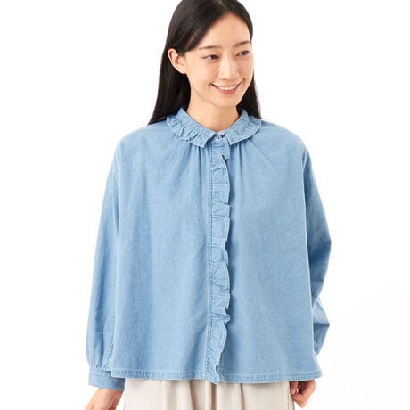 マルイウェブチャネル   /   クラウドナイン   /   トップス   /   ブラウス   /   5.4OZ布帛デニム襟・前立てフリル付ブラウス