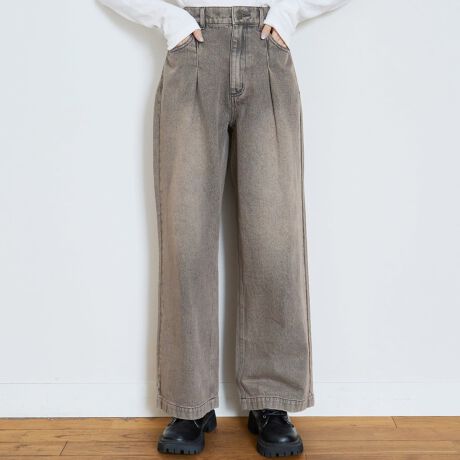 トレンド感のあるタック入りデザインが魅力のワイドデニムパンツです。