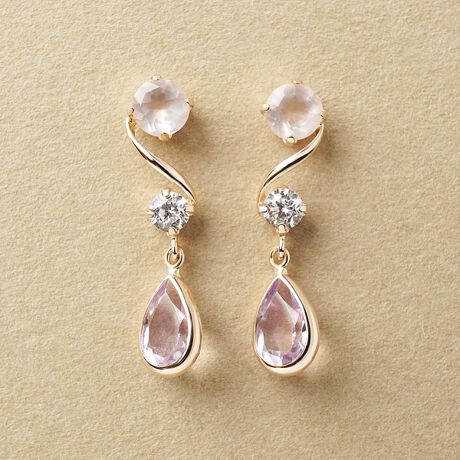 ミルキーなローズクォーツと、みずみずしく軽やかなアメジスト(2月誕生石)の組み合わせが、大人フェミニンな印象。