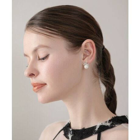 リボンの下の一粒のパールは、とろけるような艶感と気品溢れる存在感を放ち、耳元に優雅な奥行きと女性らしい柔らかなニュアンスをプラスします。