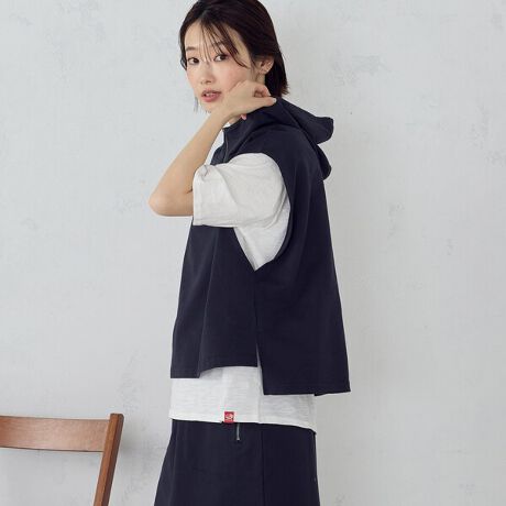 裏毛素材のフード付きベストと半袖Tシャツのセット商品です。