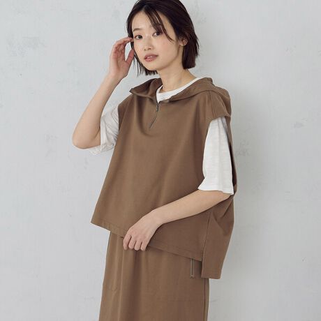 裏毛素材のフード付きベストと半袖Tシャツのセット商品です。