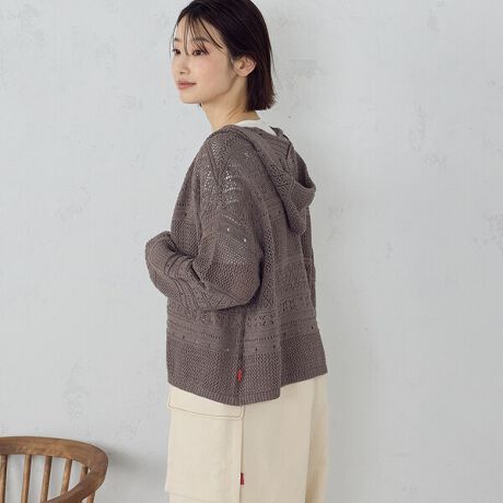 透かし編み フーディーカーディガン