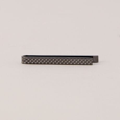 [型番:07-52UO03-206]《デザイン》リバーシブルで使用できるネクタイピンです。表面はシンプルな筋を入れた柄で、裏面はブロックチェック柄になっています。表裏で長さも変えているので、ネクタイの幅に合わせて着用ができます。ダイヤモンドカッターで一つ一つ職人の手作業で柄を入れています。《素材》固く強度のある真鍮の板を切り出した素材です。金属としての程よい粘り気と、硬さがある素材で長持ちします。《その他仕様》リバーシブル