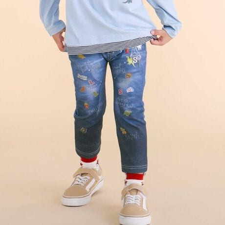 ミラノリブ生地を使用し、デニム風のプリントを施すことで、やわらかな穿き心地としっかり見えを両立しました。