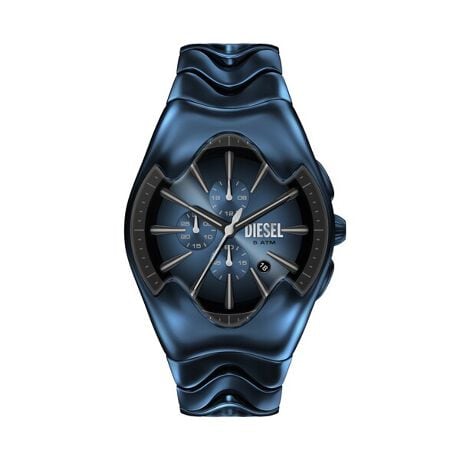 45mm径のケースにクロノグラフムーブメントを搭載したDIESELのMERCURIALウォッチ。ブラック&ブルーのグラデーションのサンレイダイヤルにブルーのステンレススチールブレスレットを組み合わせました。