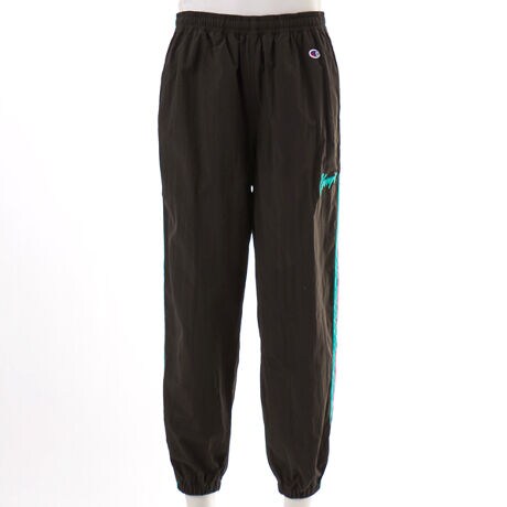 [型番:C3-D208]表地はマット調でしわ感のあるナイロン生地、裏地にはメッシュを使用したロングパンツです。ウエスト、ワタリにゆとりを持たせたACTION STYLE(アクションスタイル)独自のサイジングのリラックスシルエットで、裾口はシャーリング仕様。左腿には手書き風の「Champion(チャンピオン)」の刺繍入りで、両サイドに入れた1990年代を彷彿させる多色の切り替えラインもポイントです。