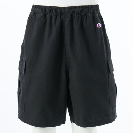 コットンを100%使用した、耐久性のあるコットンリップストップ生地のショーツです。膝上丈で、ワタリと裾口幅にゆとりを持たせたワイドシルエット。両サイドにカーゴポケット付きです。ウエストのスピンドルでサイズ調節可能。バイオウォッシュ加工により、着用の当初から着慣れた風合いが味わえます。右バックポケット口の下に、ボディカラーと同色の手書き風の「Champion(チャンピオン)」の刺繍入りです。